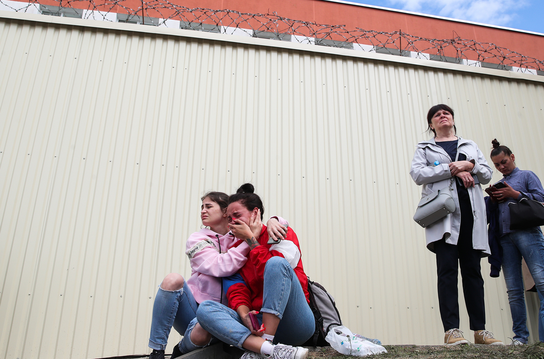 Уже в камере нам дали полулитровую бутылку воды из-под крана — одну на всех. Через пару часов к нам пришли люди в форме и снова выстроили всех лицом к стене. Назвали мою фамилию и фамилию еще одной травмированной девочки и вывели нас. Но в этот раз нас вели аккуратно и даже давали передышки, когда я начинала терять сознание. Оказалось, нас вели в скорую. Пока мы шли по улице, я видела, как на Окрестина доставили еще несколько задержанных — они стояли на коленях, их били.