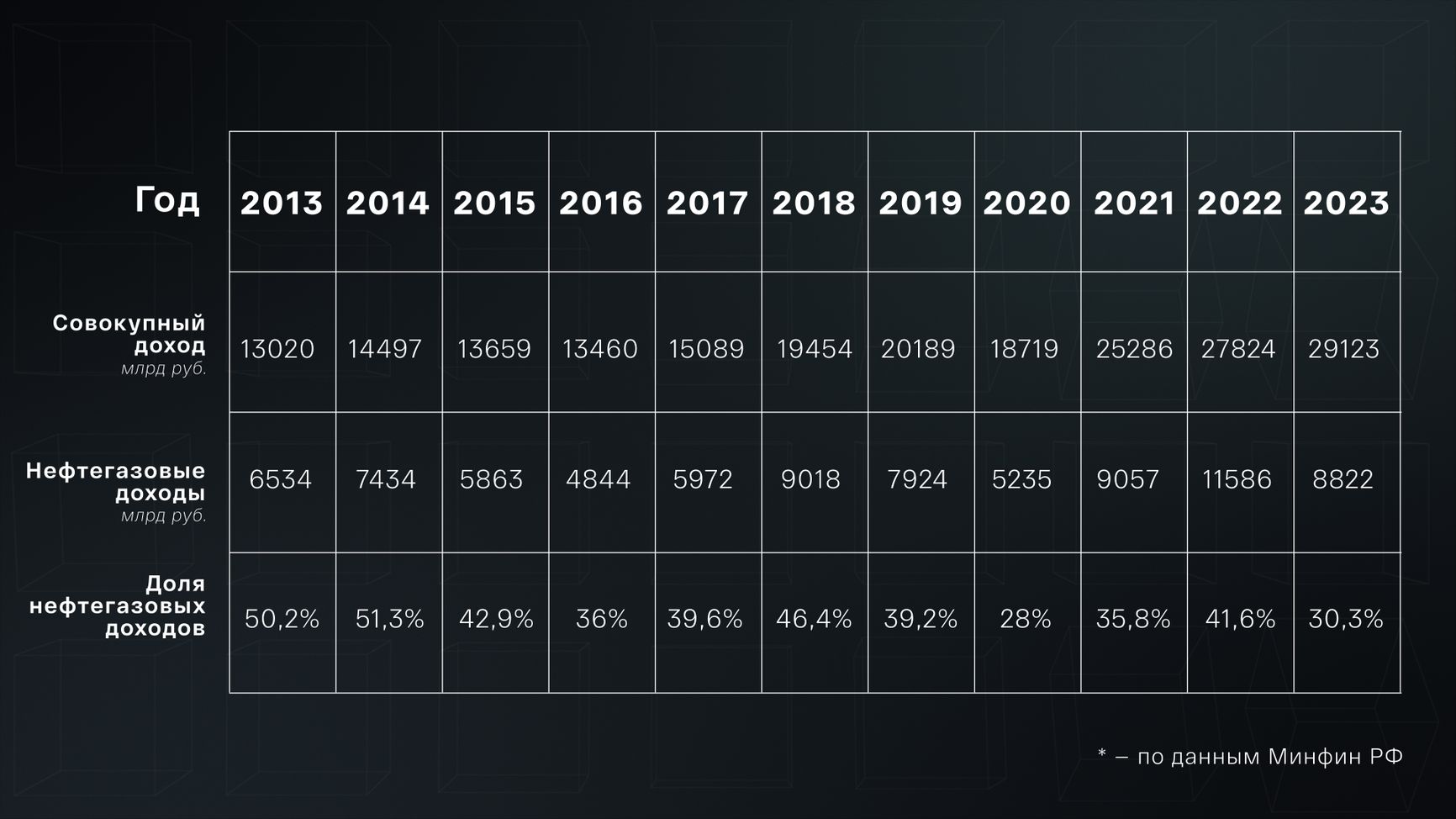 В итоге нефтегазовые доходы бюджета за год снизились почти на четверть, но пока продолжают оставаться в тренде последних лет. Основная причина сокращения доходов — не санкции, а падение стоимости нефти в мире.