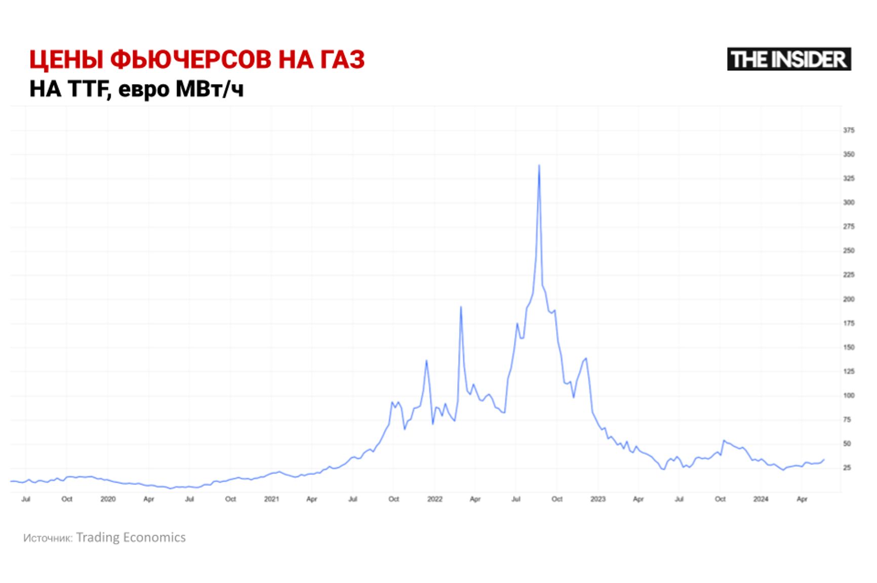 В последние месяцы цены фьючерсов на газ на хабе TTF ниже, чем перед началом российского вторжения в Украину — на уровне июня 2021 года.
