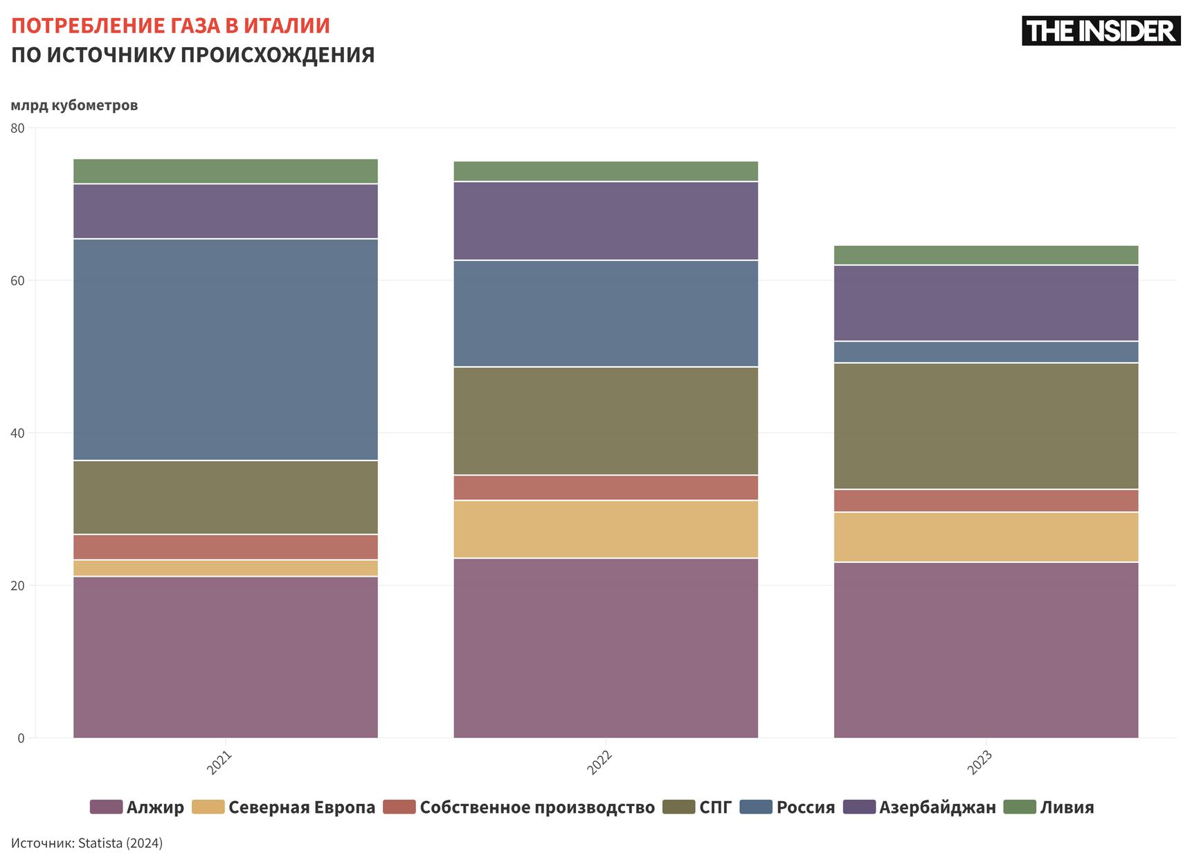 Италия уже практически пережила газовое расставание с Россией. В 2021 году Москва была крупнейшим ее поставщиком, на нее приходилось 38% всего потребленного итальянцами газа, а во втором полугодии 2023 года — уже только 2%.