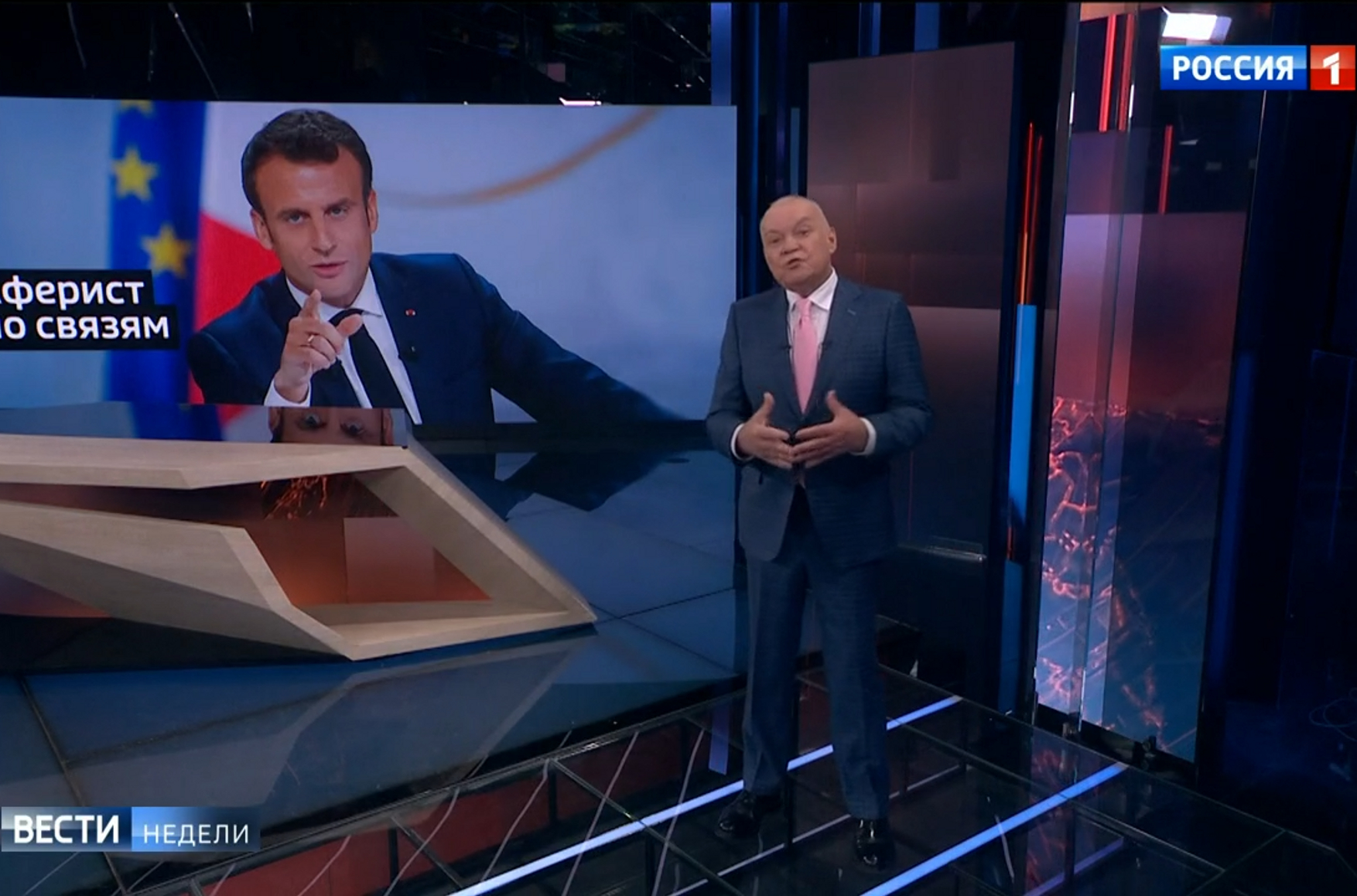 But Kiselyov went even further in his monologue. His explanation as to why Macron needed to make this statement was truly astonishing. As it turns out, the problem is not Russian aggression or the bizarre policies of the Trump administration. It is much more unsavory even than all of that: