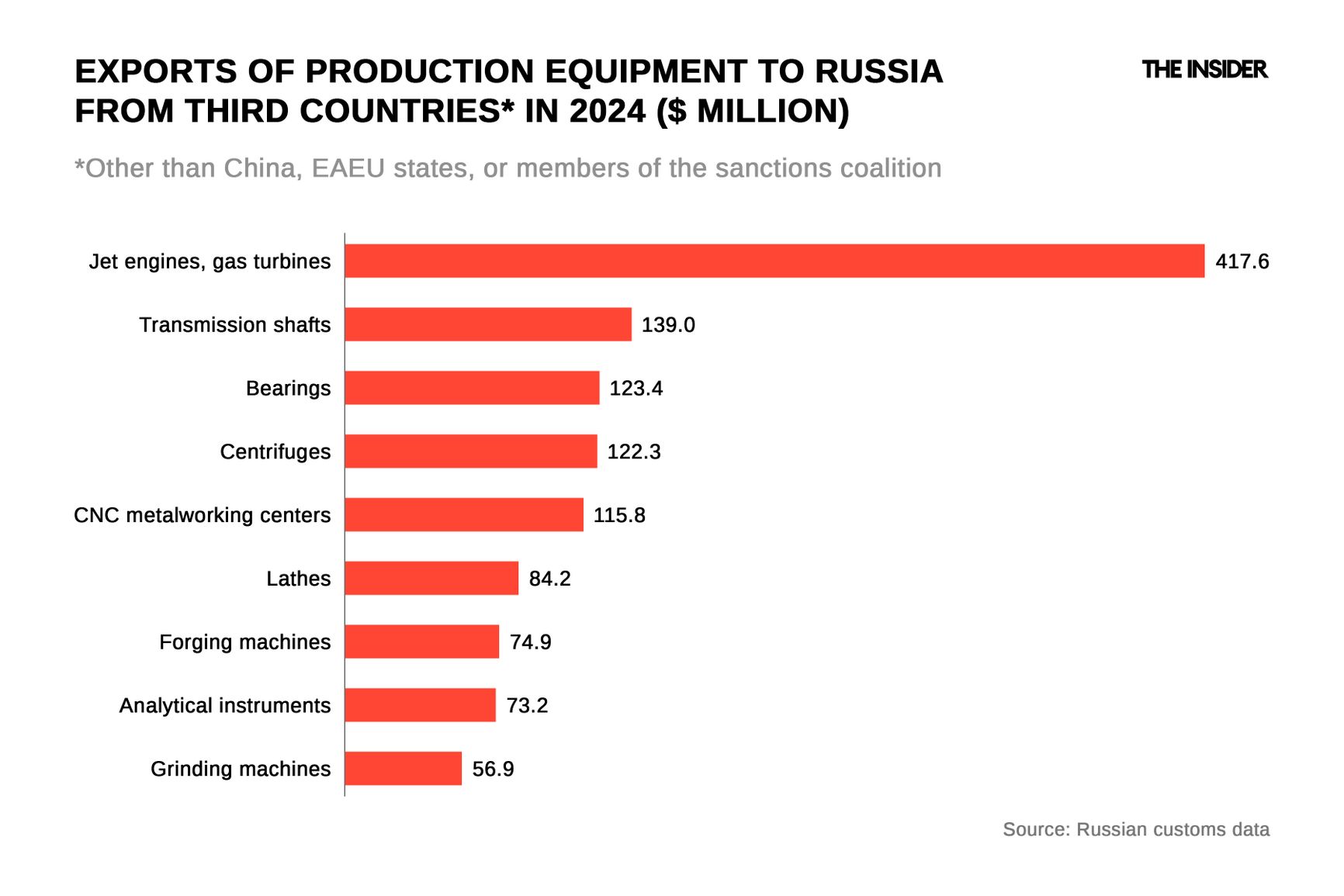 As The Insider has documented in multiple investigations, finished weapons and military gear are imported into Russia in very limited volumes and only in niche categories. But the import of industrial equipment and components is critical to Moscow’s production of weapons and the continuation of the war.