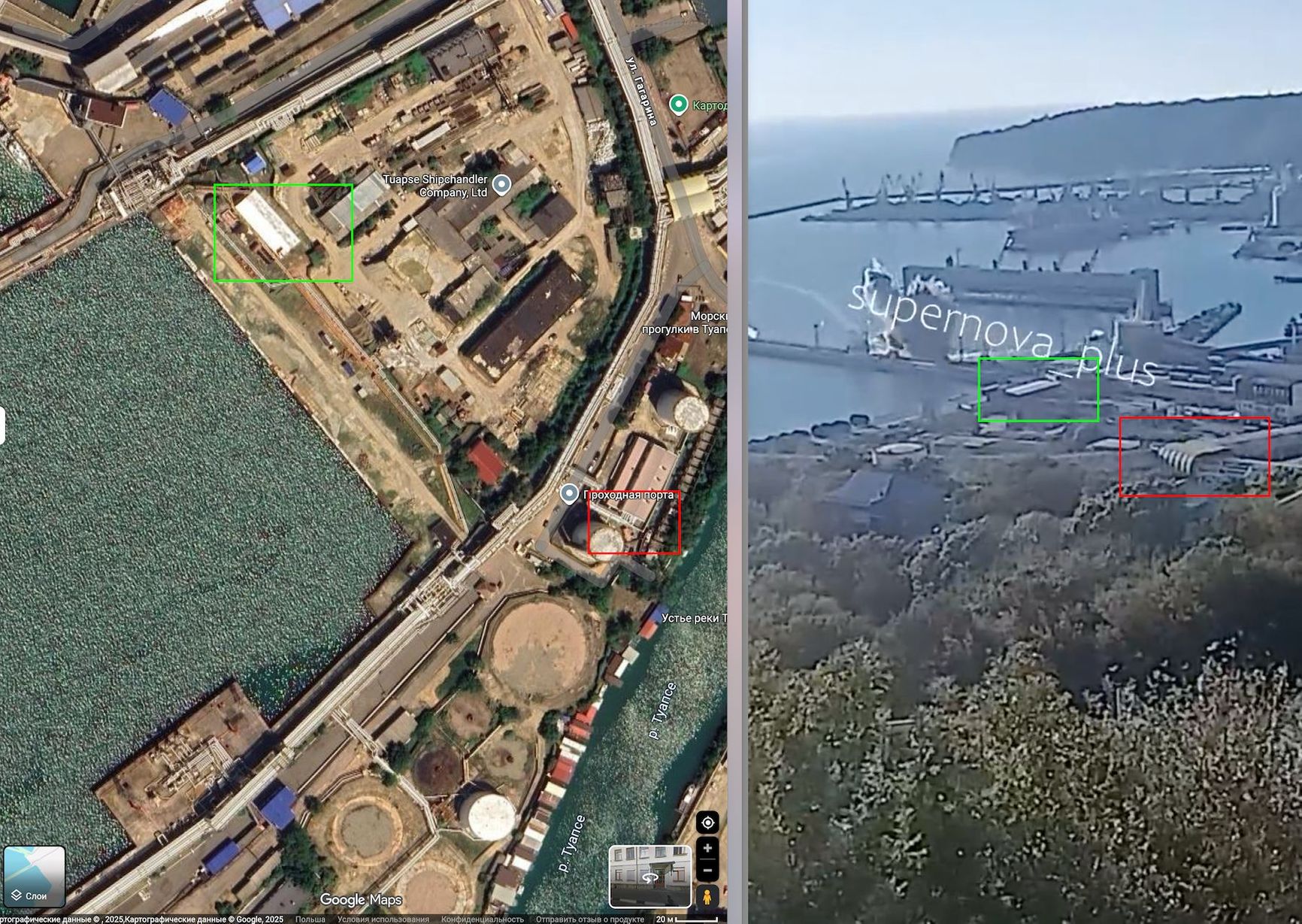 Diagram of the Tuapse port from a report by the Eurasian Union of Scientists. The red cross marks the site of the strike.