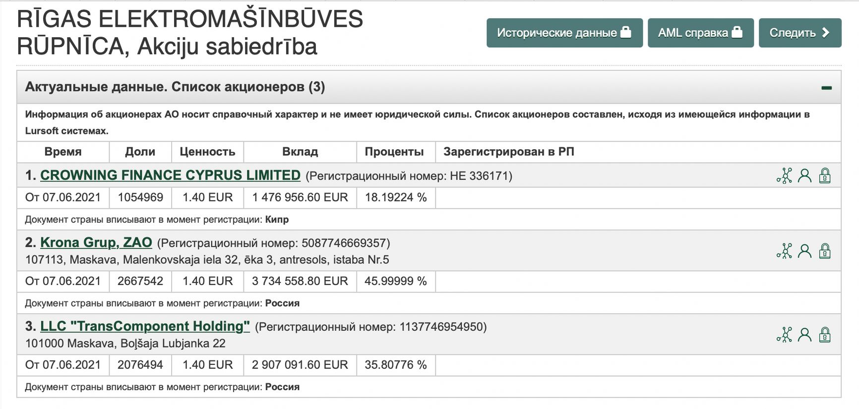 Однако основную долю в 46% в латвийской компании RER держала московская Krona Grup. Как выяснил The Insider, и за ней стоят Бокарев и Махмудов.