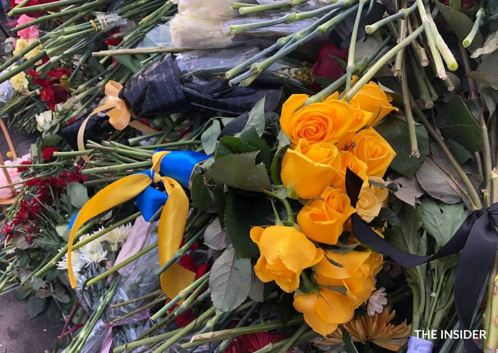 Очередь людей с цветами растянулась на весь мост