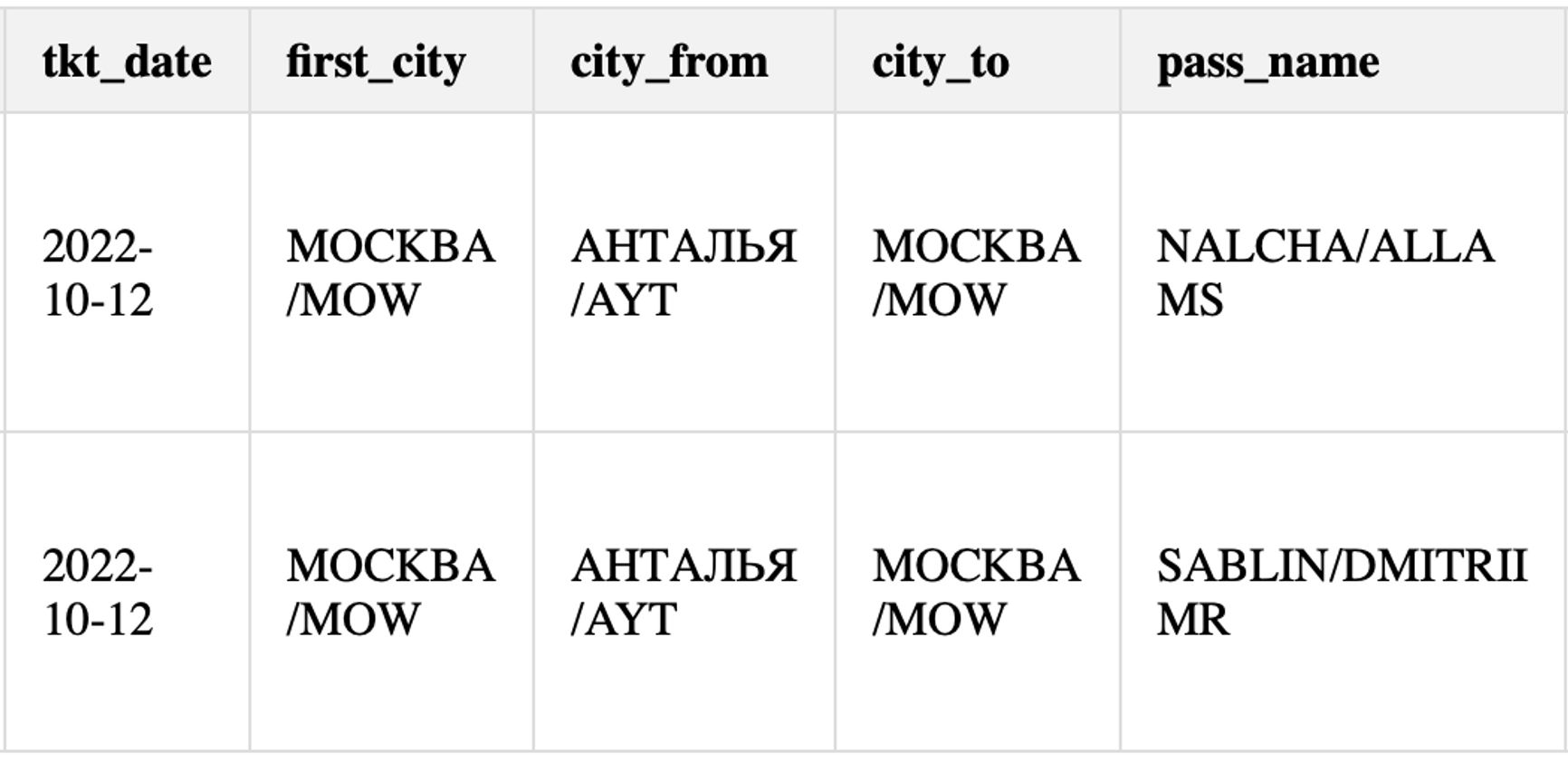 The Insider получил доступ к данным Саблина и его супруги Аллы Налчи из системы бронирования авиабилетов «Сирена-Трэвел». Согласно полученной нами информации, Саблин и Налча 7 октября 2022 года отправились в Анталью из Москвы с пересадкой в Сочи, а 12 октября вернулись прямым рейсом обратно в столицу.